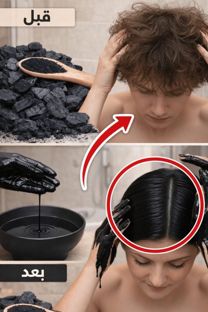 لون الفحم النشط شديد السواد، وقد تلتصق جزيئاته الداكنة مؤقتًا بالأسطح—ومن بينها خصلات الشعر. ومن هنا بدأت فكرة “تغميق الشيب”.