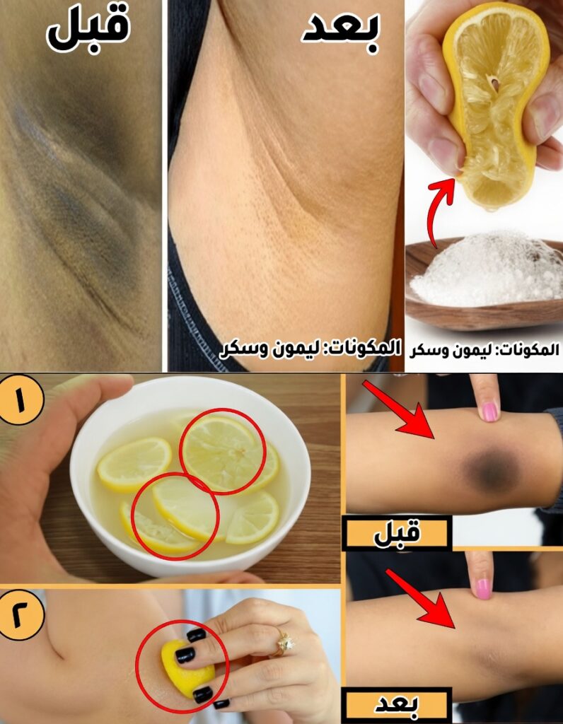 يمكن تعزيز استخدام الليمون على المرفقين والركبتين والإبطين بمزجه مع مكونات طبيعية أخرى، بشرط الاعتدال والحذر: