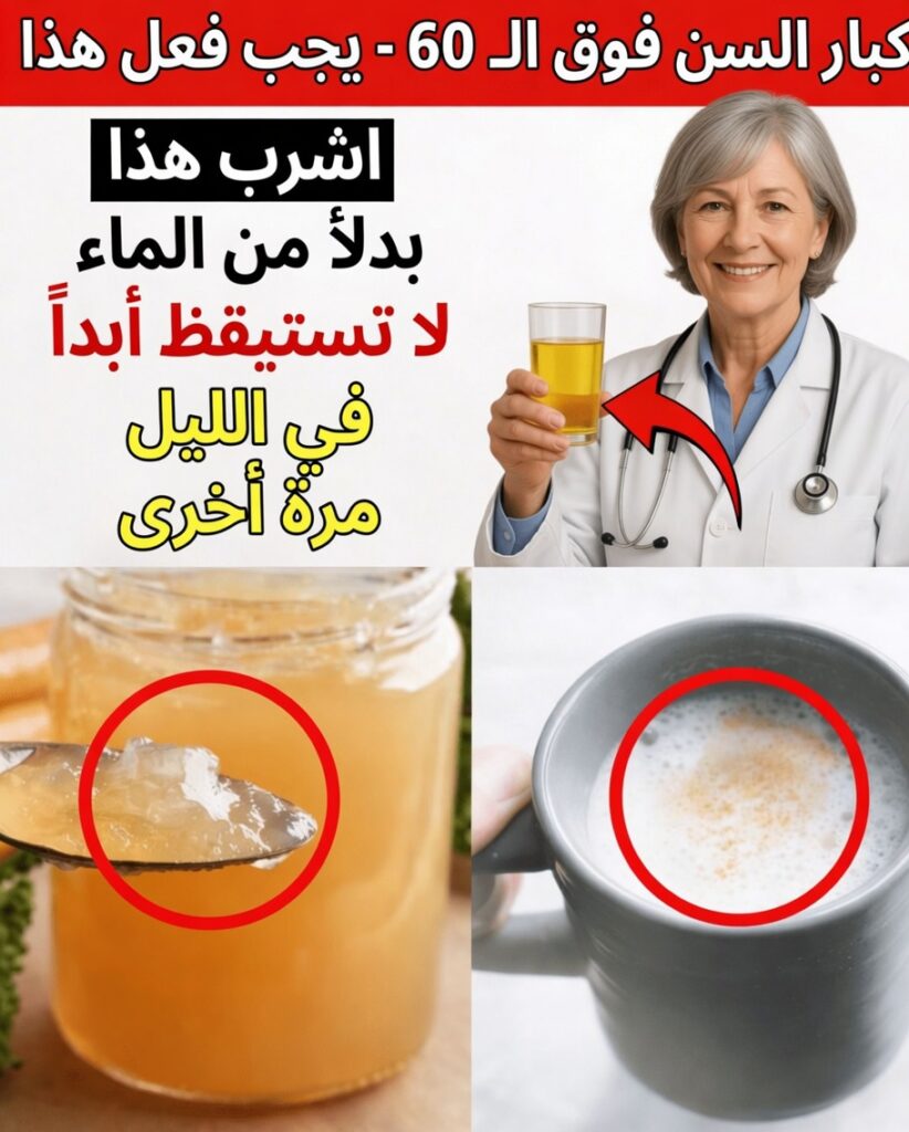 إذا كان الاستيقاظ ليلًا يتبعه تيبّس صباحي أو شعور بالتعب العضلي، فقد يكون الجيلاتين الدافئ أو مرق العظام المُخفّف من أكثر الخيارات تغذية ضمن المشروبات الليلية المهدئة لكبار السن فوق 60. يُذكر أن الجلايسين (حمض أميني) قد يرتبط بتحسين عمق النوم ودعم عمليات التعافي أثناء الليل لدى بعض الأشخاص.