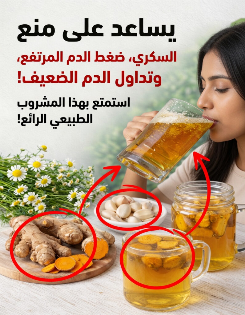يُعد مشروب الكركم والثوم والبابونج خيارًا سهل التحضير وغنيًا بالنكهة، وقد يكون طريقة طبيعية لطيفة لاستكشاف مكونات ربطت بعض الدراسات بينها وبين دعم صحة التمثيل الغذائي والدورة الدموية. ومع إدخاله في روتينك اليومي بشكل متزن، قد تشعر بتحسن بسيط لكنه ملموس في راحتك العامة مع مرور الوقت.