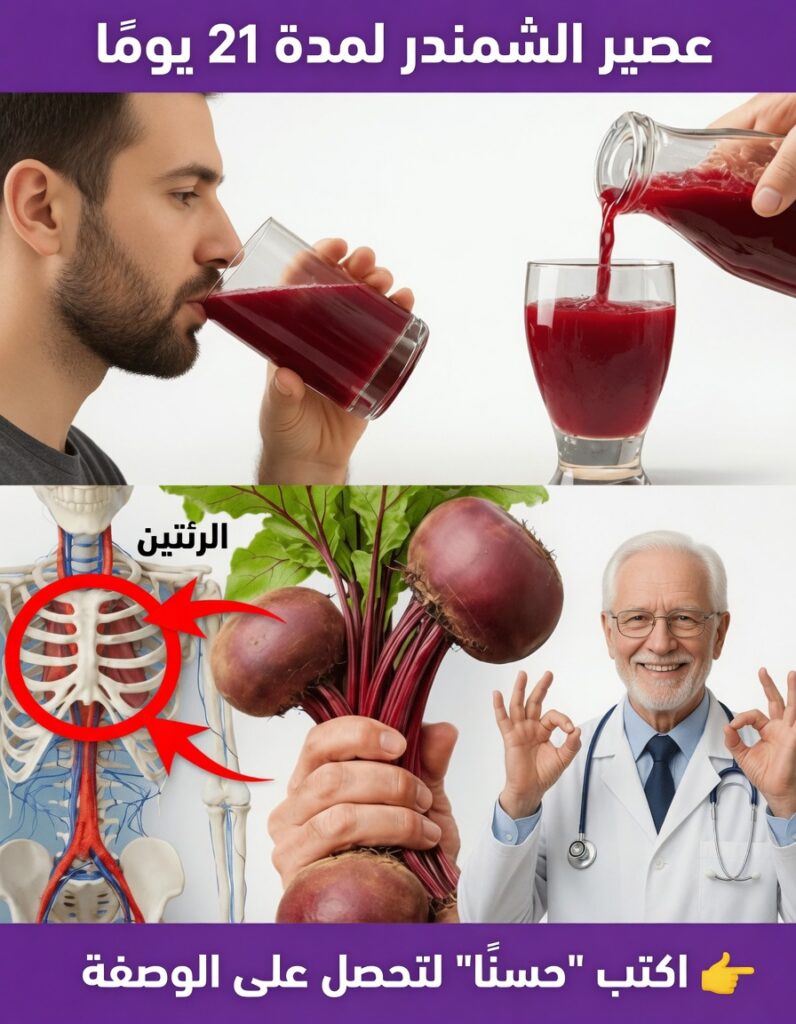 كوب صغير من عصير الشمندر يومياً + 20–30 دقيقة من المشي + شرب كمية كافية من الماء على مدار اليوم.